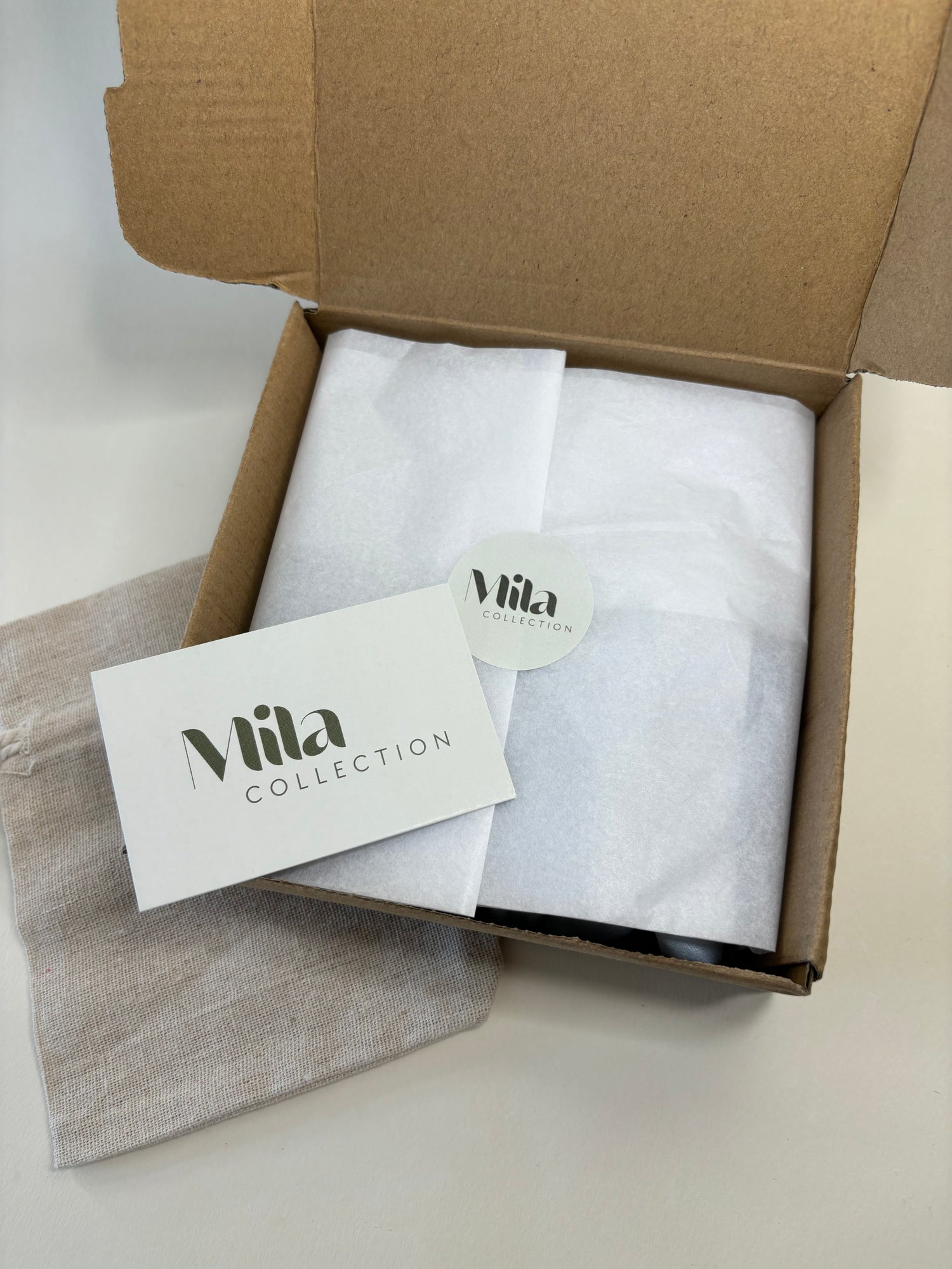 Our sustainable packaging not only protects your purchase, but also aligns with our values of responsibility and quality, ensuring that every aspect of your experience with Mila Collection reflects our care for the planet.